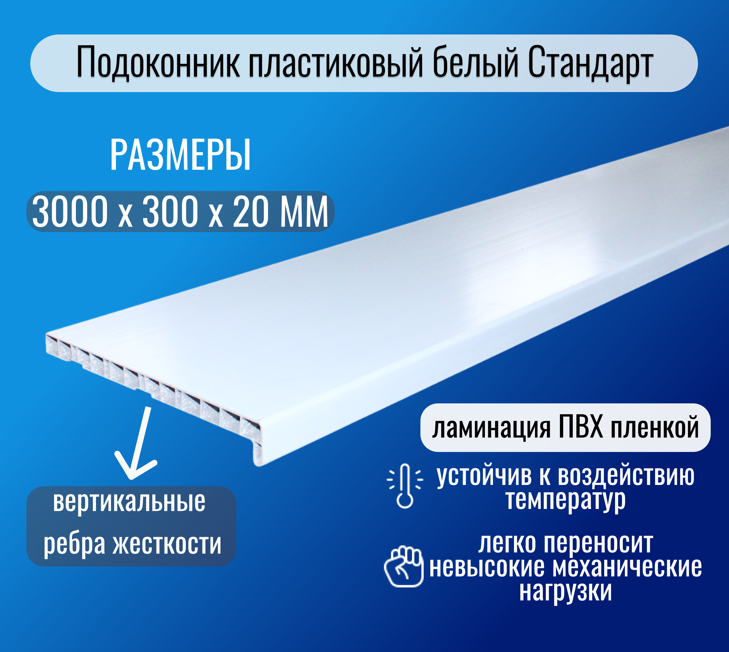 Подоконник пластиковый белый Стандарт 300 х 3000мм