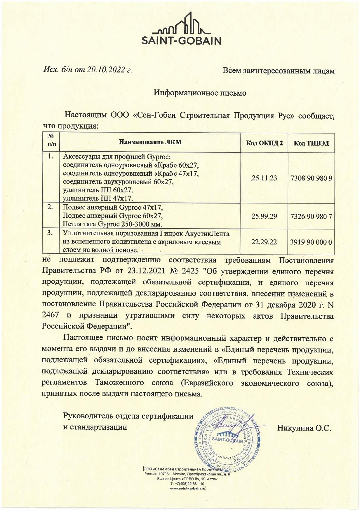 - Аксессуар является компонентом сертифицированных систем Gyproc.