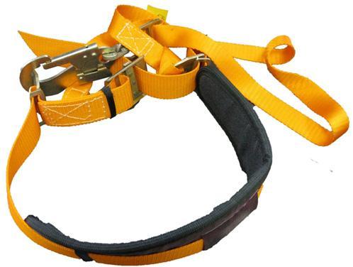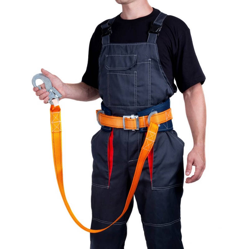 Применять на высоте не менее 3 м над уровнем земли или любой опорной поверхности. Конструкция включает поясной ремень, подкладочный кушак, капроновый ленточный фал (1,4 м)