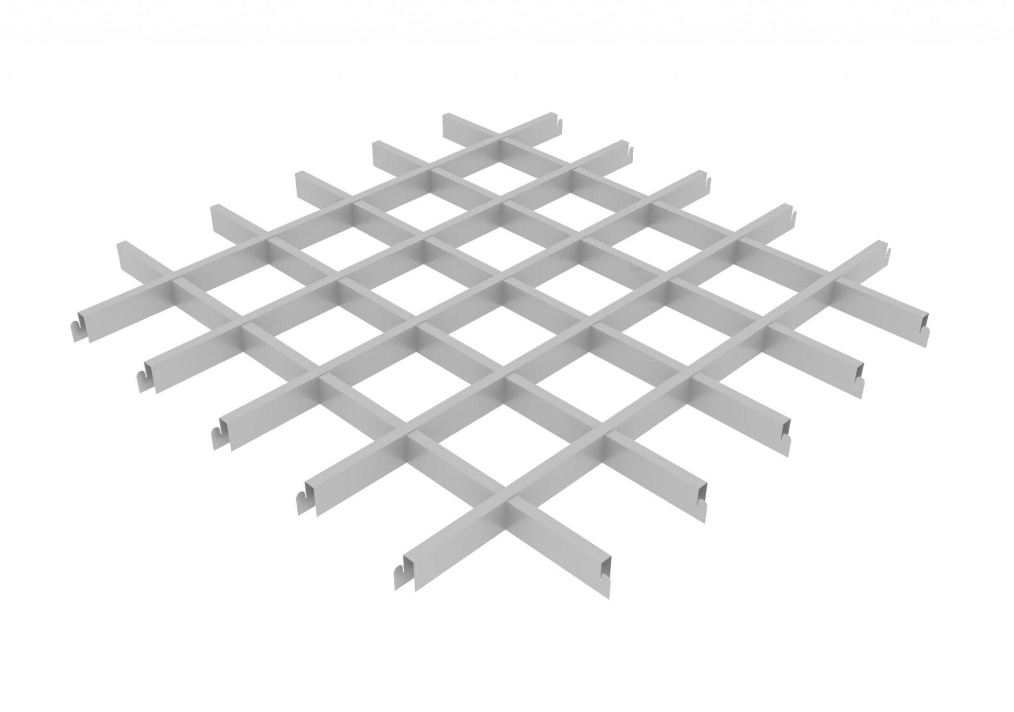 Потолок «Грильято» представляет собой объемную решётку, образованную U-образными алюминиевыми профилями, шириной 10мм и высотой 40мм.