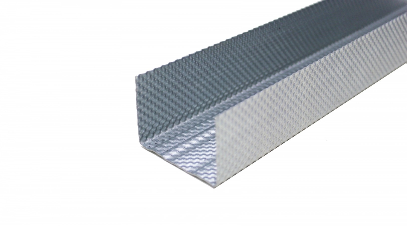 Имеет П-образную форму и используется совместно со стоечными профилями соответствующего размера для монтажа каркасов для перегородок, облицовок и потолков. В конструкциях перегородок и облицовок направляющий профиль крепится на пол и потолок.