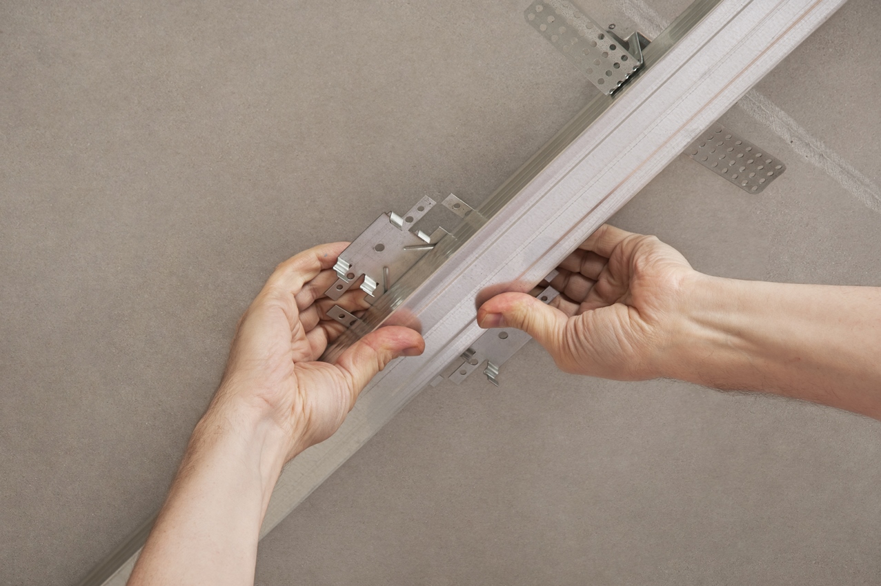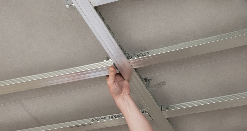 Подвесные потолки – это оптимальное решение конструктивно-планировочных задач, проблем акустики, устранения неровностей перекрытия и скрытого размещения инженерных коммуникаций. Они состоят из потолочных профилей, которые крепятся между собой в единый каркас с помощью специальных комплектующих (соединителей, удлинителей, подвесов, тяг) и гипсокартона, который крепится шурупами к полученному металлическому каркасу.