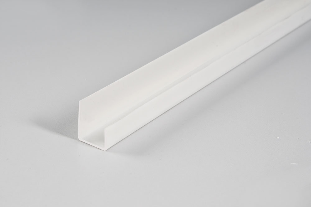 Стартовый окантовочный профиль имеет П-образную форму, выполнен из пластика. Размер соответствует гипсокартонному листу толщиной 12,5 мм.