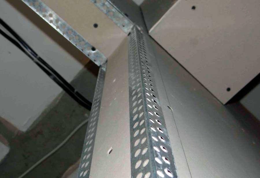 - Прикрепите алюминиевый углозащитный профиль на слой растворной смеси, нанесенной предварительно на угол конструкции