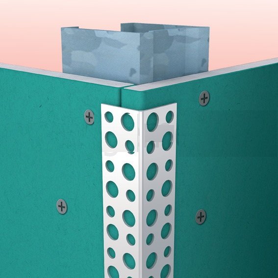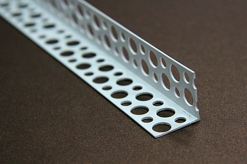 Профиль образует угол обеспечивая плотное прилегание профиля к поверхности угла стены или перегородки. На профиле имеются отверстия, которые сделаны для того, чтобы обеспечить прочное и надежное сцепление с поверхностью конструкции.