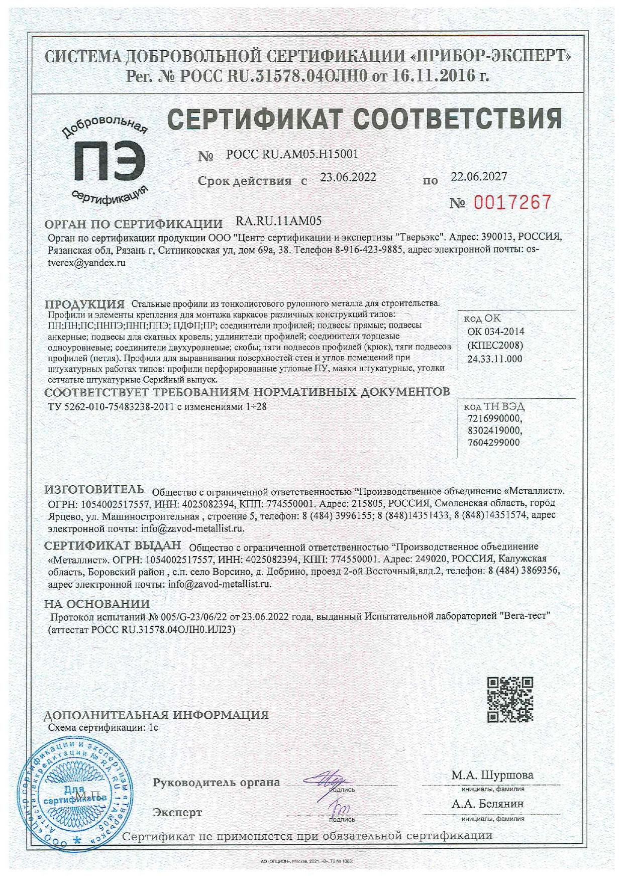 Профиль изготовлен из оцинкованной стали с нанесением цинкового покрытия, для защиты от возникновения и развития коррозии.