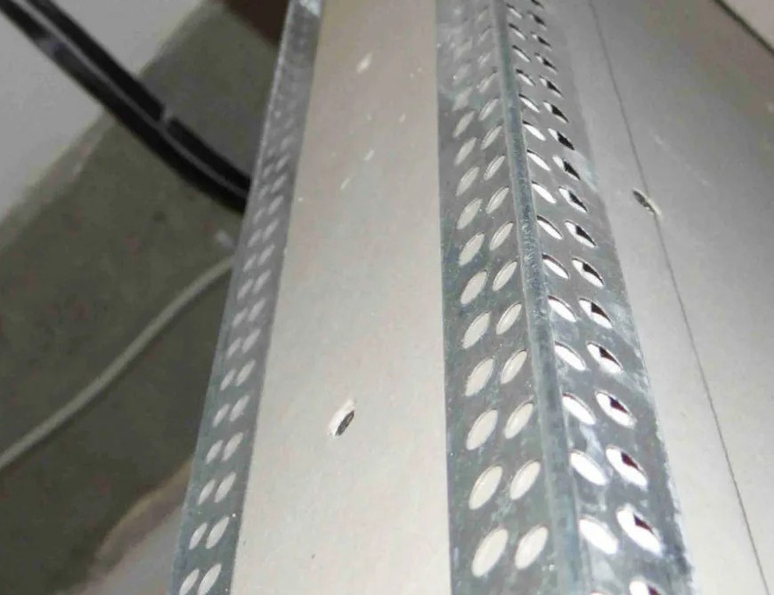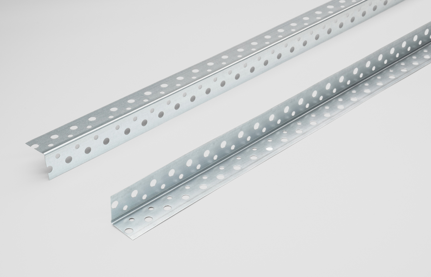 - Полки профиля имеют отверстия, в которые проникает шпаклевка (при монтаже конструкций из ГКЛ) или штукатурный раствор, нанесенный на угол конструкции, что обеспечивает прочное сцепление профиля с поверхностью