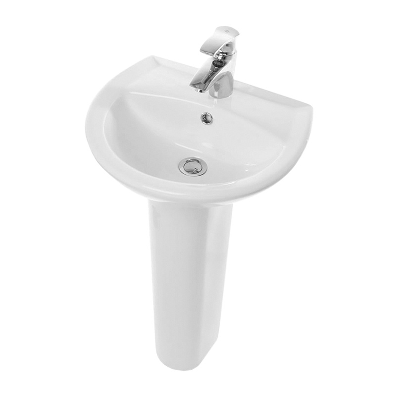 Умывальник имеет современный дизайн. Устанавливается на пьедестал или на кронштейны (имеются отверстия для крепления в стене). Товар сертифицирован и выполнен в соответствие с ГОСТ 30493-17, ГОСТ 21485 – 2016.