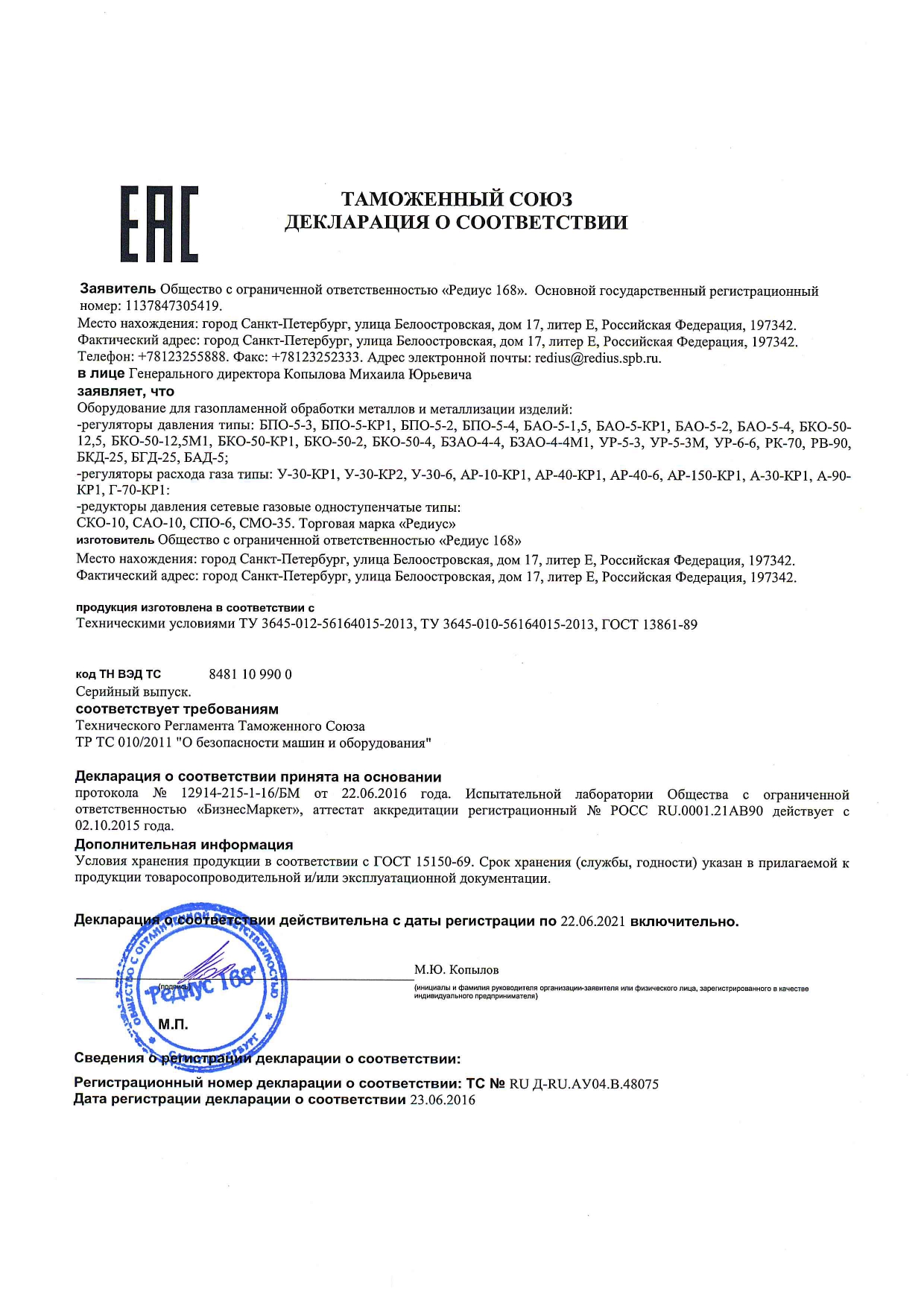 Редуктор предназначен для понижения и регулирования давления газа (пропана), поступающего из баллона, и автоматического поддержания постоянного рабочего давления газа при питании постов и установок газовой сварки, резки, пайки и других технологических процессов.