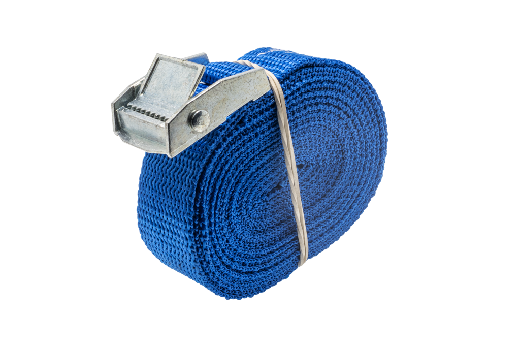 Кольцевой стяжной ремень с замком с пружинным механизмом предназначен для стяжки легкого цельного груза (или же его составных частей) для обеспечения целостности при транспортировке и хранении. Имеет широкую сферу применения: от закрепления груза на багажнике автомобиля, до стягивания шлейфов проводов в банкоматах. Очень прост в использовании: конец полиэстеровой ленты ремешка продевается в замок и затягивается до нужного усилия крепления, а зубья замочка зажимают ленту, не давая распускаться ремешку.