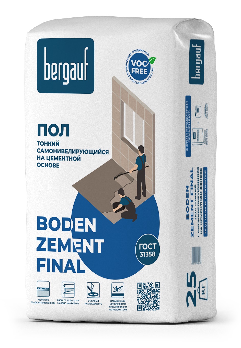 Самовыравнивающийся, быстротвердеющий цементный пол Бергауф BODEN ZEMENT FINAL, используя его Вы гарантированно получите глянцевую, ровную и сверхпрочную поверхность после одного нанесения. Возможно как машинное так и ручное нанесение.