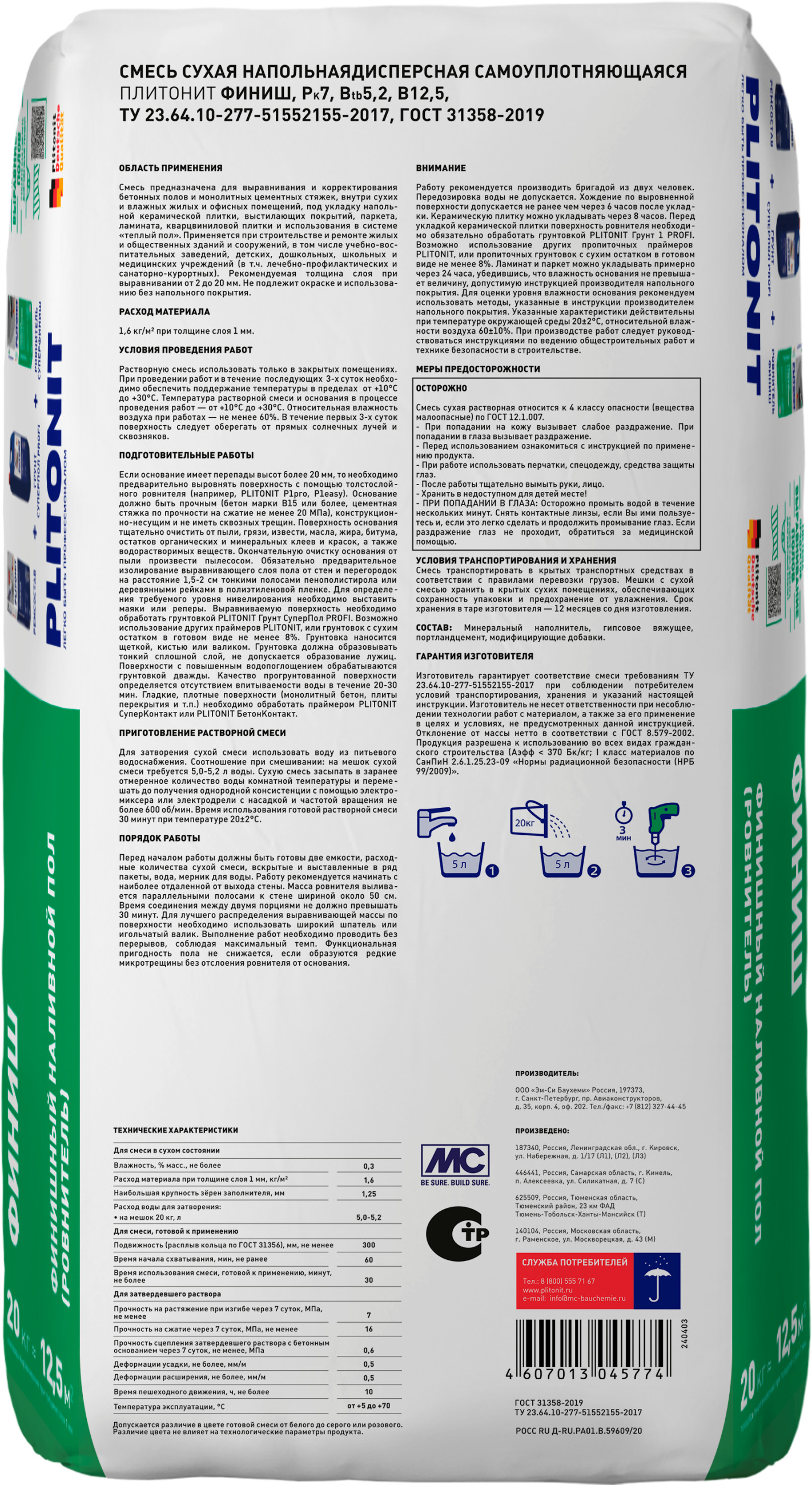 | Объем упаковки, л/кг: | 20 |