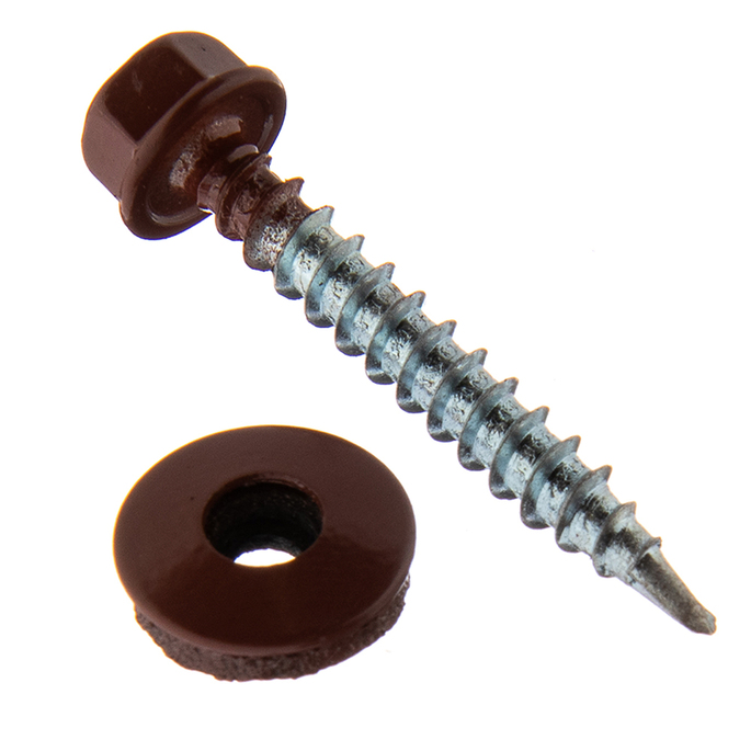 Саморезы кровельные с буром 4,8 х 35 мм RAL 3005 красные 250шт