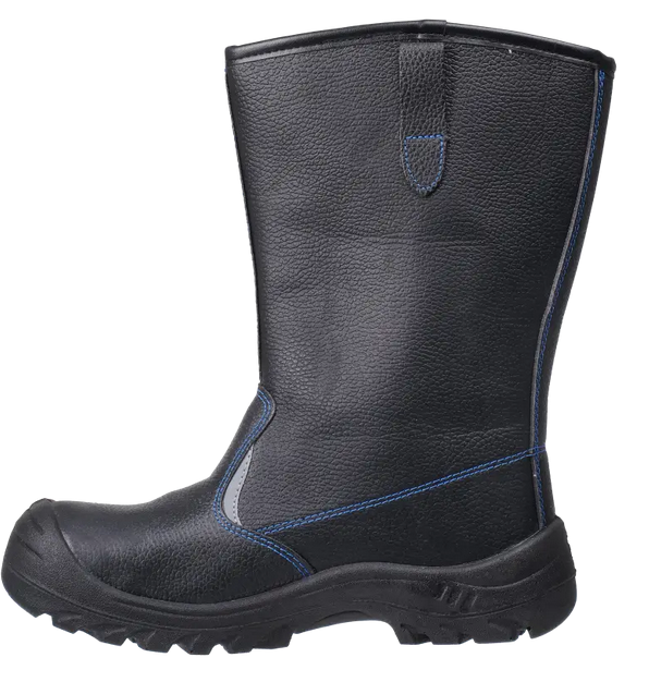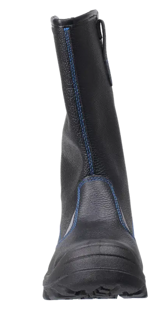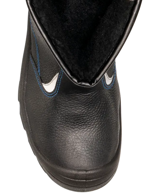 Кожаные сапоги созданы для защиты ног от обычных производственных загрязнений в зимний период. В их конструкции предусмотрены боковые петли на верхней части голенища, что делает их удобными для надевания. Металлоподносок защищает ногу от ударов, при этом его максимальная нагрузка составляет 200 Дж. Однако металлоподносок обладает высокой тепло- и электропроводностью, поэтому такие сапоги не рекомендуются для использования в помещениях (производственных цехах), где могут быть очень высокие или низкие температуры, а также в местах с высоким напряжением. Светоотражающие элементы увеличивают видимость работников в темное время суток и на неосвещенной территории. Полиуретановая подошва, выполненная одним слоем и установленная методом литья, включает амортизатор в пяточной части, что позволяет снижать ударные нагрузки при ходьбе. Глубокий протектор обеспечивает хорошее сцепление с различными поверхностями и предотвращает скольжение благодаря своему рельефу. Размер - 41.