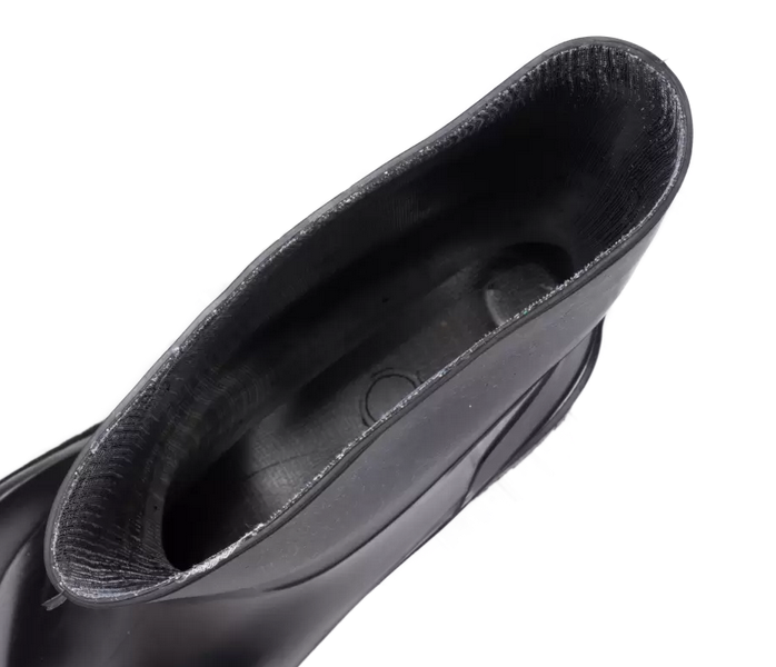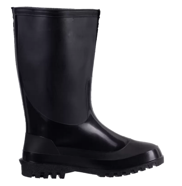 Сапоги резиновые мужские ПВХ черные р-р 41 - обувь выполнена с высоким голенищем (32 см), имеет износостойкую подошву с каблуком и глубоким рифленым рисунком подошвы, который препятствует скольжению. Сапоги обеспечивают защиту от механических воздействий, воды, воздействий растворов неорганических кислот, нефтепродуктов, щелочей.