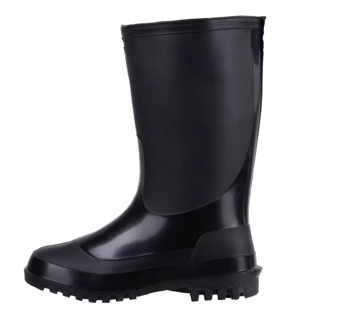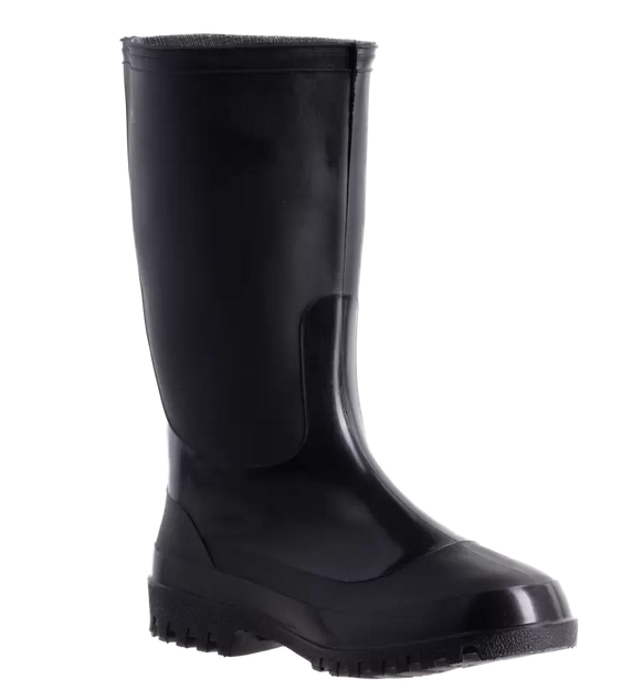 Сапоги резиновые мужские ПВХ черные р-р 44 - обувь выполнена с высоким голенищем (32 см), имеет износостойкую подошву с каблуком и глубоким рифленым рисунком подошвы, который препятствует скольжению. Сапоги обеспечивают защиту от механических воздействий, воды, воздействий растворов неорганических кислот, нефтепродуктов, щелочей.