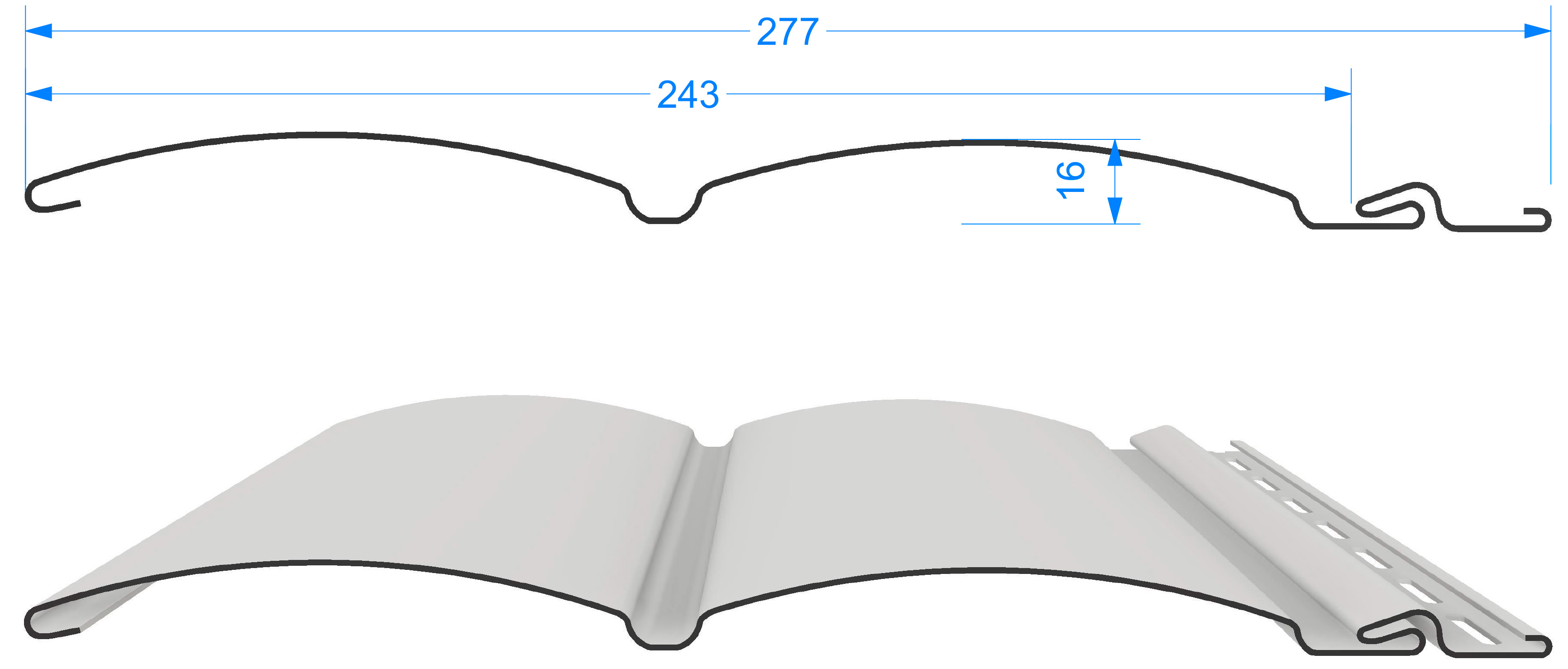 - Антиураганный запатентованный замок - это специальный загиб на верхней кромке панелей сайдинга, который является дополнительным ребром жёсткости, увеличивает прочность фасада и исключает его «шуршание» при высоких ветровых нагрузках, что делает проживание в доме значительно более комфортным.