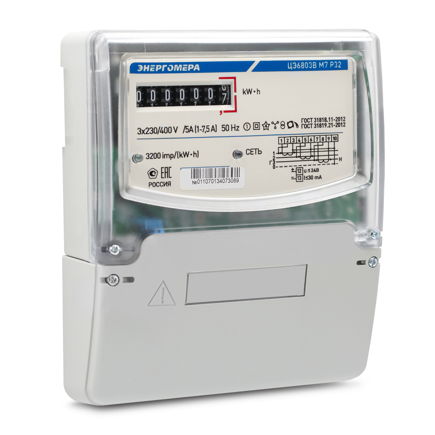 Счетчик электроэнергии ЦЭ6803В 1 230В 5-60А — это трехфазный однотарифный электромеханический прибор учета с классом точности 1, предназначенный для точного измерения активной энергии в сетях 3x230/400 В и диапазоне токов 5–60 А. Оснащен семизначным механическим счетным механизмом, что обеспечивает надежное и длительное считывание показаний без сбоев. Этот счетчик идеально подходит для жилых и коммерческих зданий с трехфазным электроснабжением, где требуется стабильный и точный учет электроэнергии для оптимизации расходов и контроля потребления.