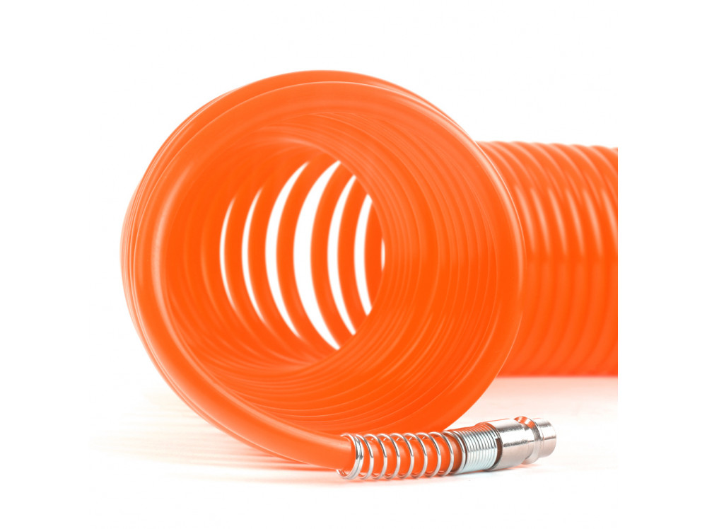Шланг пневматический спиральный PATRIOT SPE 10 предназначен для соединения компрессора с различным пневматическим инструментом. Изготовлен из высококачественного полиуретана в форме спирали, устойчивы к низким температурам, эластичен, стойкий к истиранию и перекручиванию. Оснащен быстросъемными штуцерами, обеспечивающими легкое присоединение и надежное крепление.Длина – 10 м.