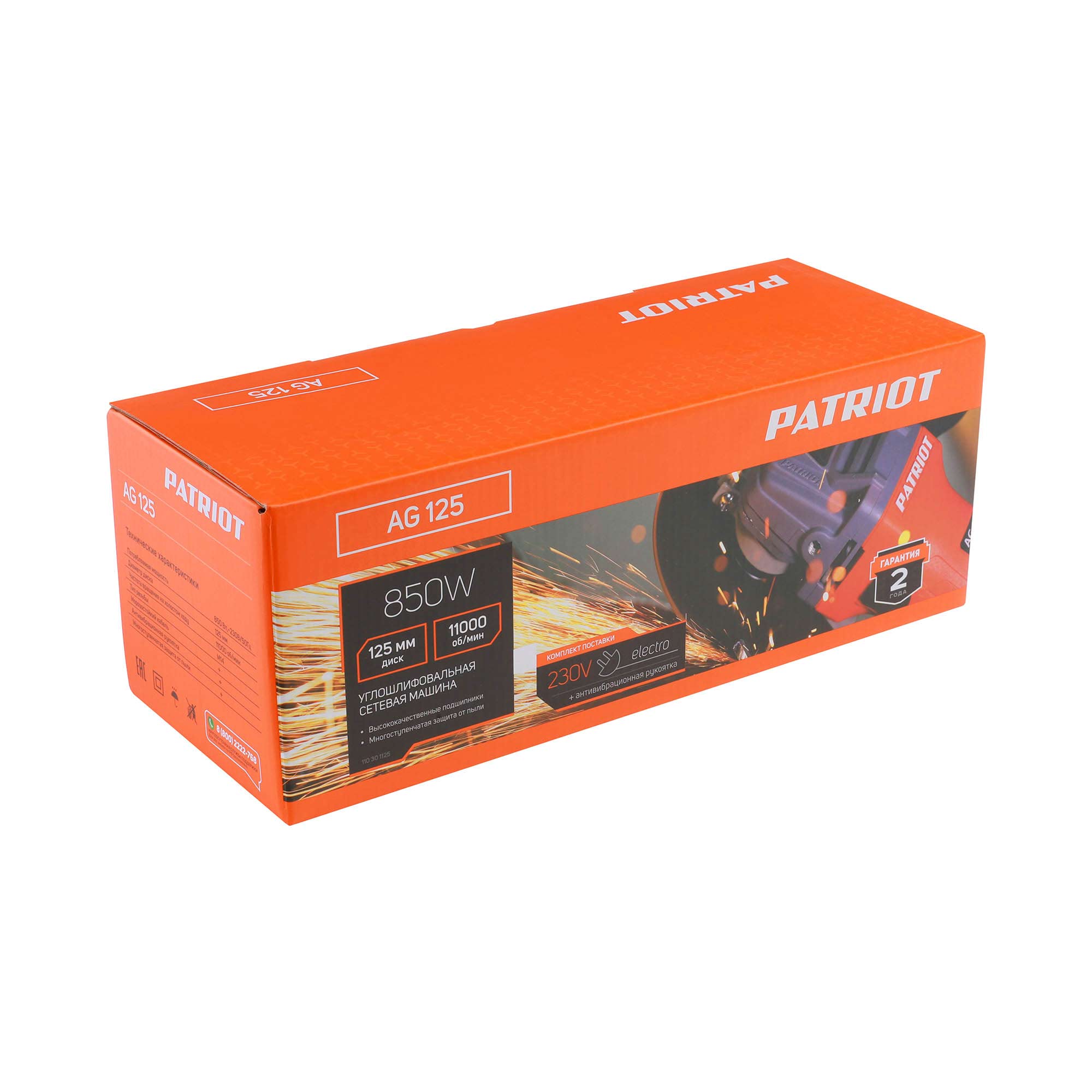 Шлифмашина угловая PATRIOT 850Вт 125мм AG 125