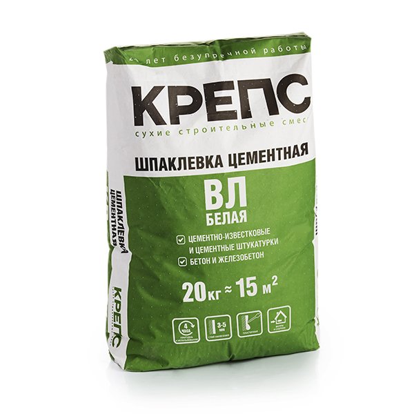 Шпатлевка на цементной основе КРЕПС ВЛ белая предназначена для финишного выравнивания поверхностей стен и потолков из бетона, обычных цементных, цементно-известковых штукатурок. Рекомендуется использование для внутренних и наружных работ.