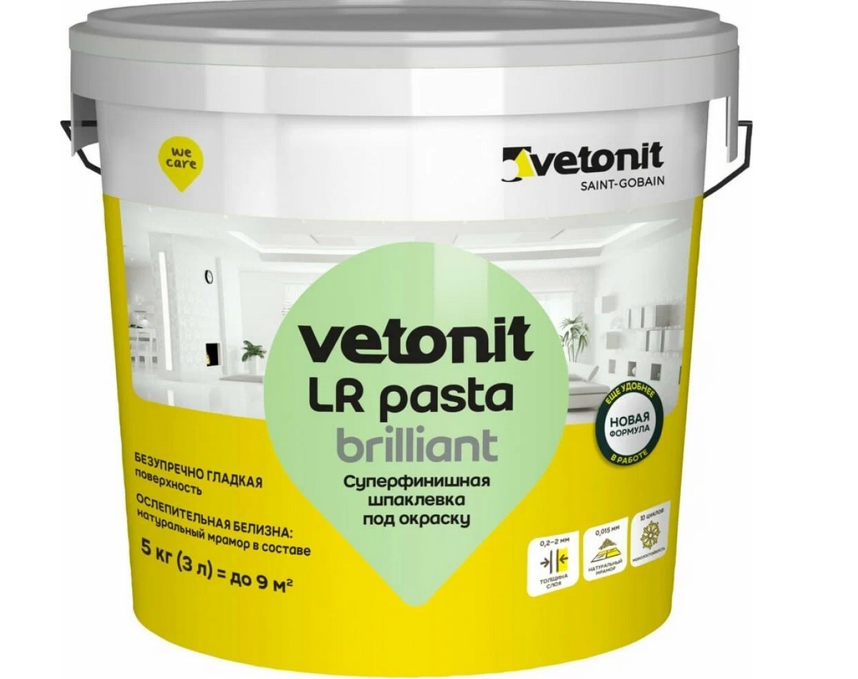 - Шпаклевка vetonit LR Pasta brilliant не является водостойкой и она непригодна для выравнивания полов или оснований под облицовку плиткой.