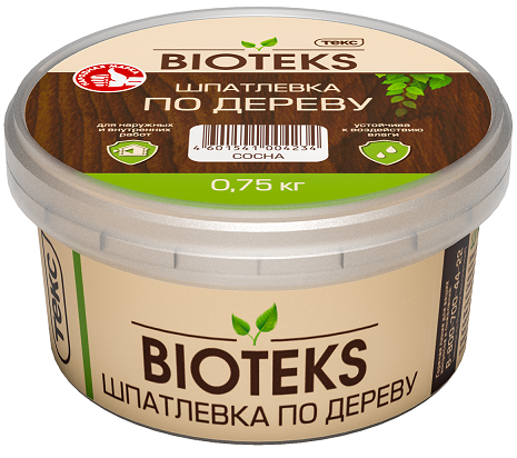 Шпатлевка по дереву BIOTEKS - Шпатлевка готовая к применению, для заделки неровностей различных деревянных поверхностей (мебель, двери, пол, панельные стены, окна). Возможно использование шпатлевки для наружных работ, а также во влажных помещениях благодаря свойству влагостойкости.