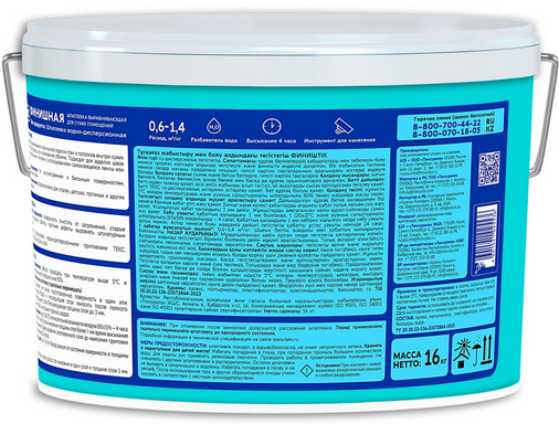 Шпатлевка финишная - предназначена для выравнивания и финишной отделки стен и потолков внутри сухих помещений по гипсокартонным плитам, оштукатуренным и бетонным поверхностям под окраску или оклеивание обоями. Подходит для заделки швов между гипсокартонными плитами с использованием самоклеящейся ленты или серпянки.