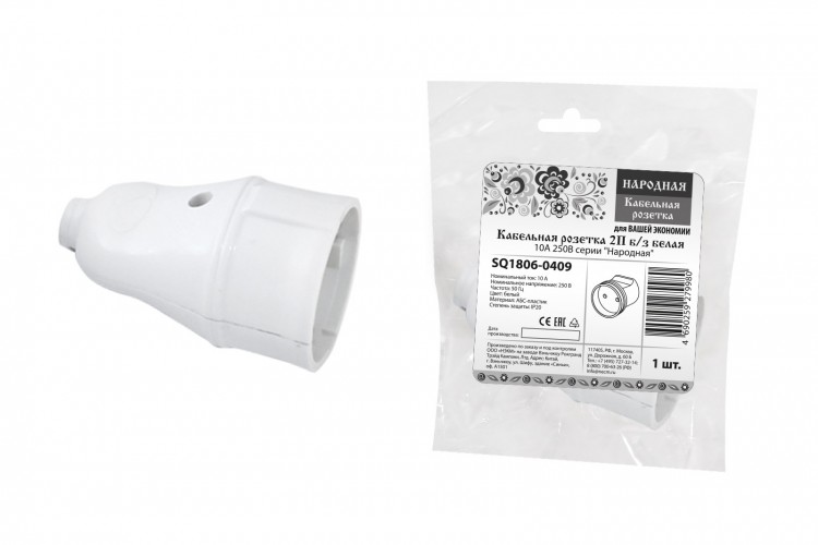 Розетка переносная (штепсель) для удлинителя без заземления белая - штепсельный соединитель, предназначенный для подключения к нему сетевой вилки шнура различных электрических приборов