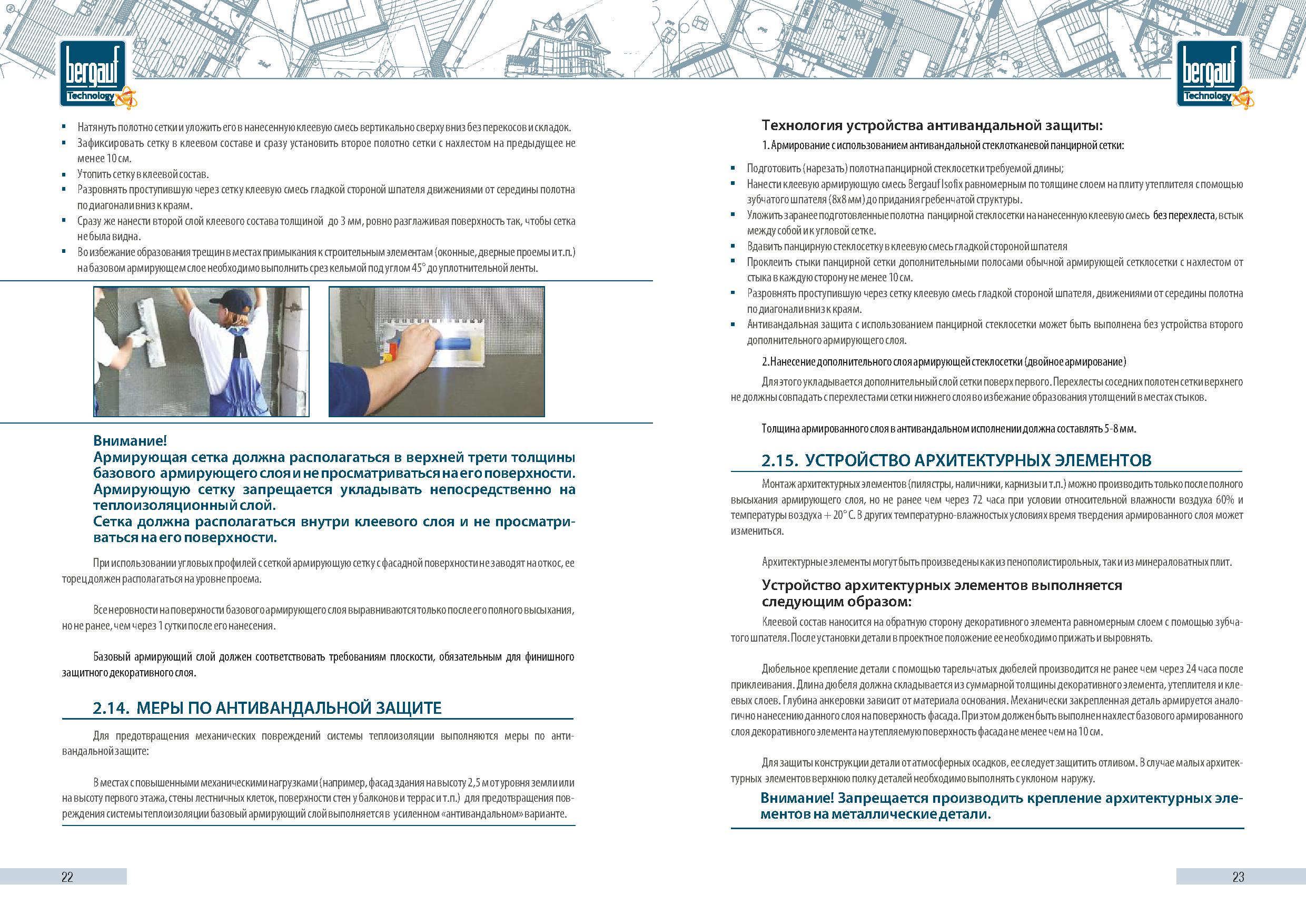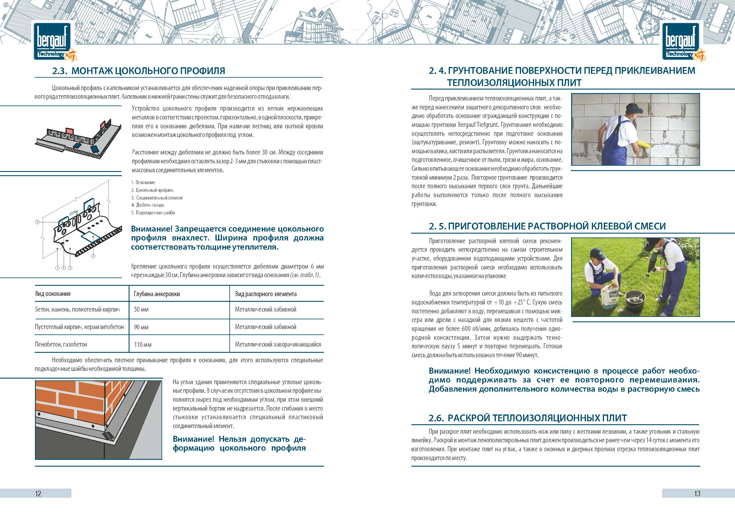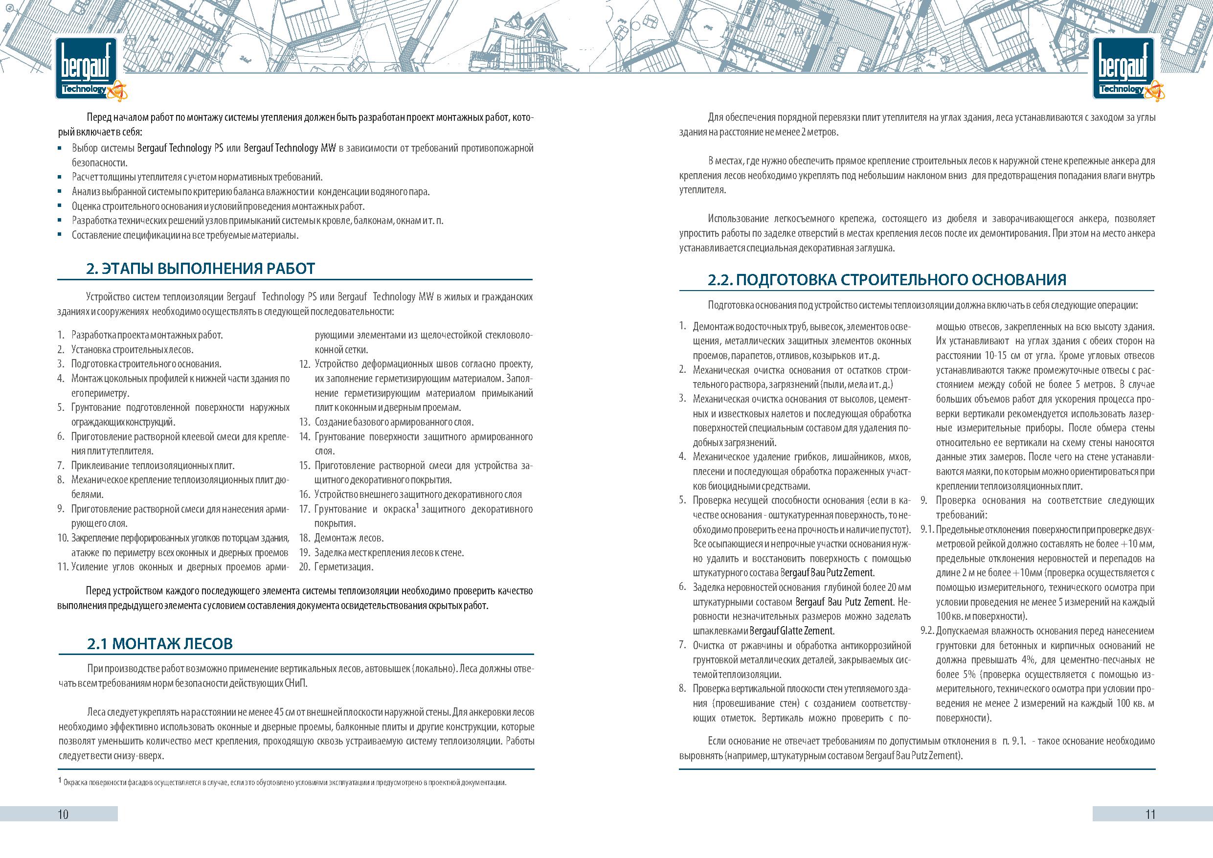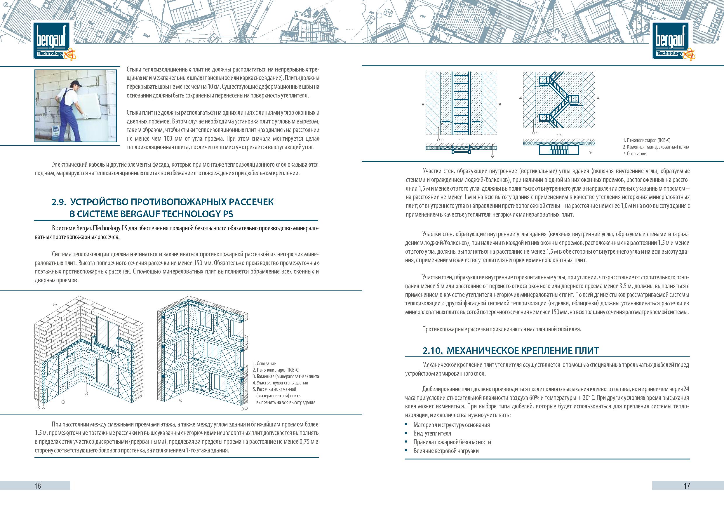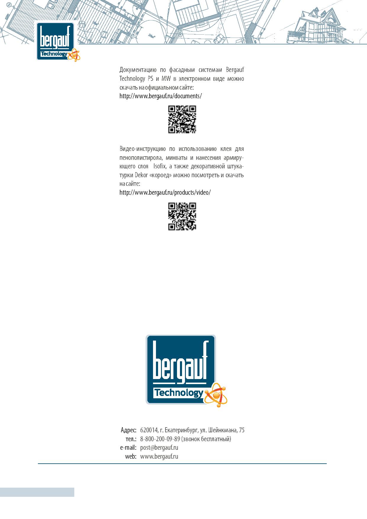 Проектирование и монтаж материала Bergauf CRYSTAL в системах утепления фасадов Bergauf Technology PS или MW следует выполнять в соответствии с альбомами технических решений «Bergauf Technology PS» и «Bergauf Technology MW», а также руководствуясь инструкцией по монтажу систем наружной теплоизоляции фасадов зданий Bergauf Technology PS и MW.