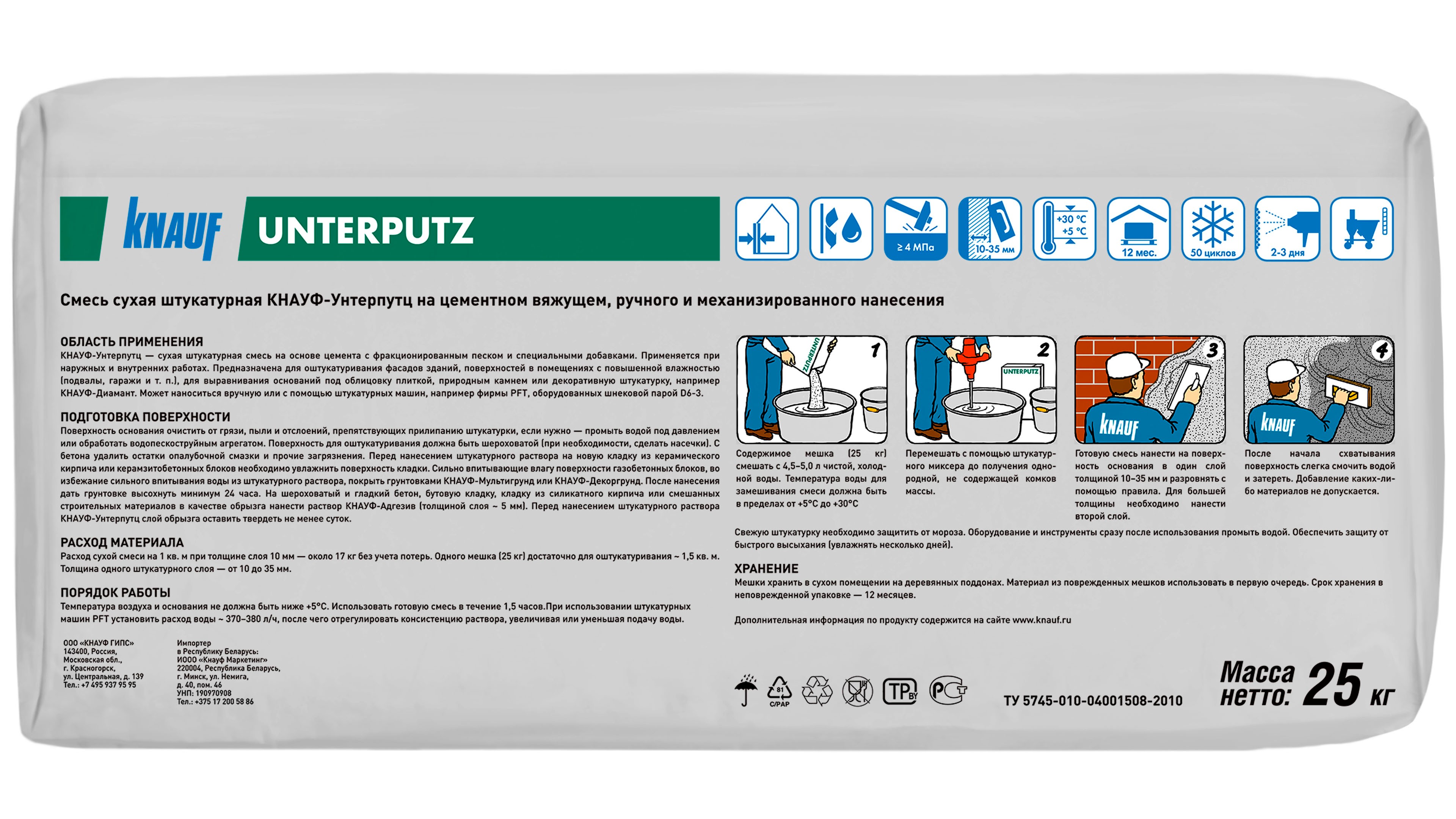 Штукатурка КНАУФ Унтерпутц - это сухая штукатурная смесь превосходного качества для наружных и внутренних работ. Изготовлена на основе цемента, фракционированного песка и специальных добавок.