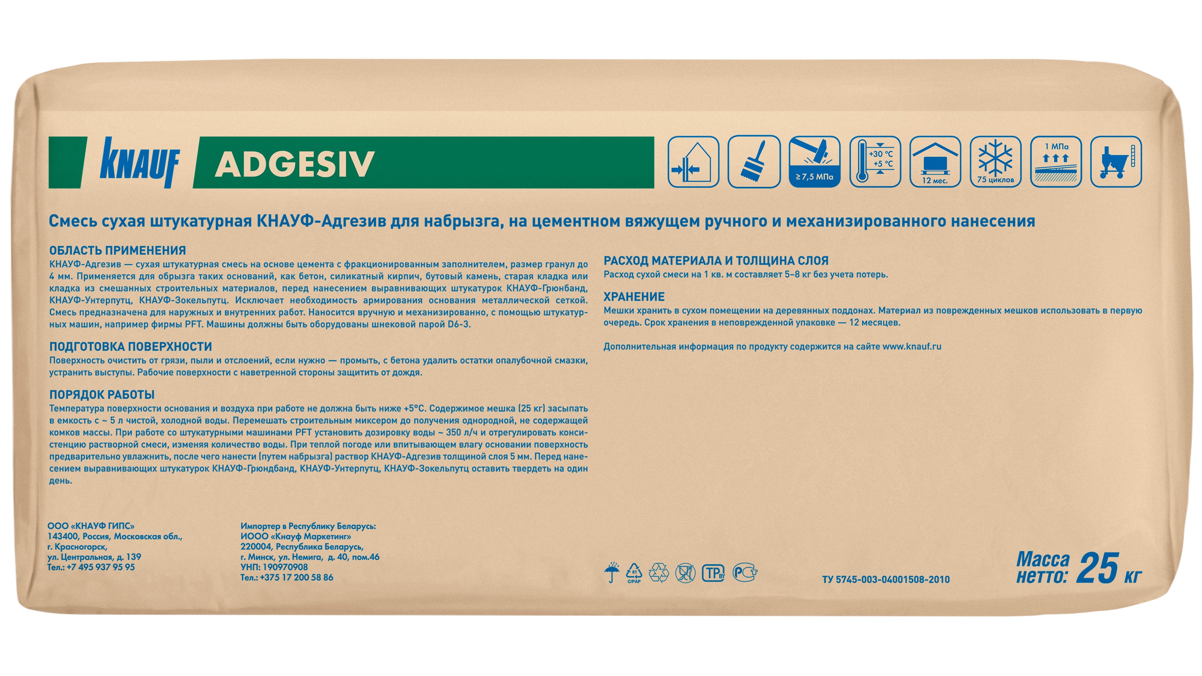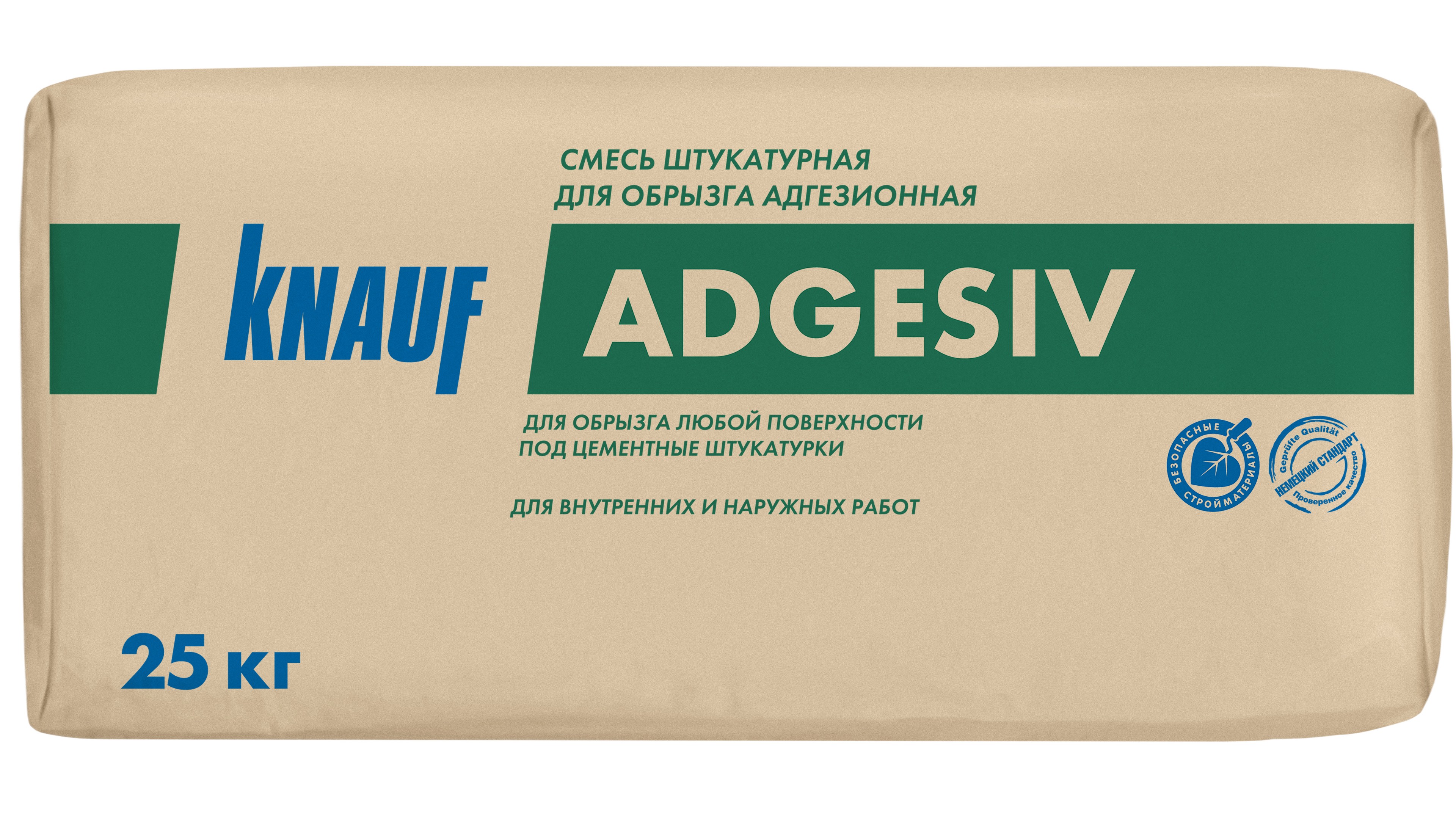 • Штукатурка цементная для обрызга адгезионная КНАУФ-Адгезив создает шероховатую высокоадгезионную поверхность.