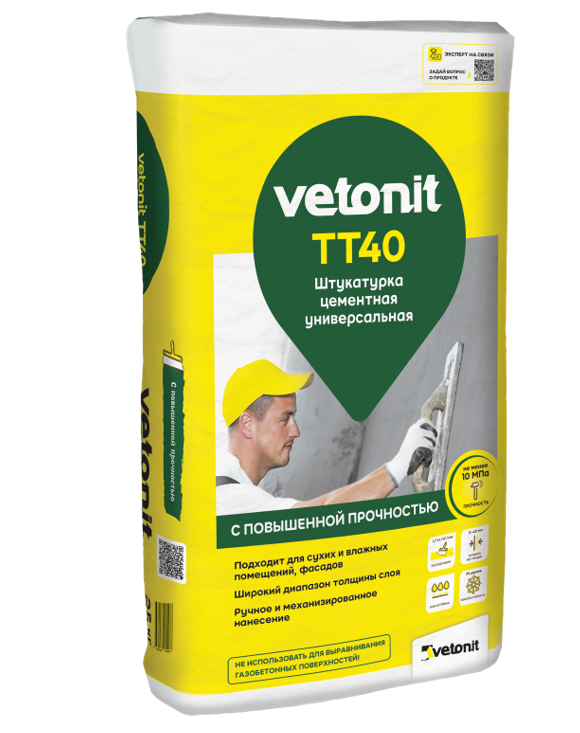 Штукатурка ВЕТОНИТ ТТ 40 цементная влагостойкая универсальная 25 кг