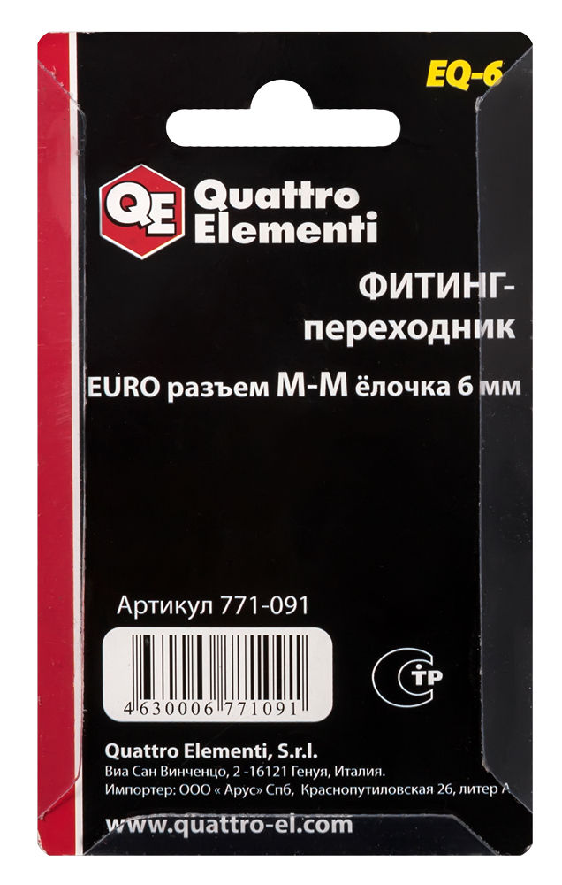Штуцер разъемное соединение папа рапид (Euro) - папа елочка 6 мм