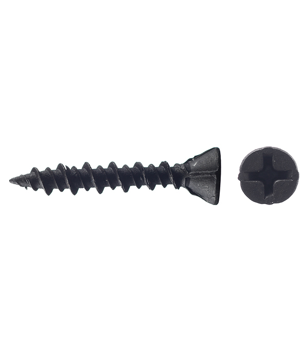 Саморезы для ГВЛ - самонарезающий прокалывающий шуруп с зенкующей головкой, предназначаются для крепления гипсоволокнистых плит к направляющим из металла. Для защиты от преждевременной коррозии покрываются оксидированным составом, который придает крепежу характерный графитовый цвет. Имеет потайную головку со шлицем PH2 (Philips N2)