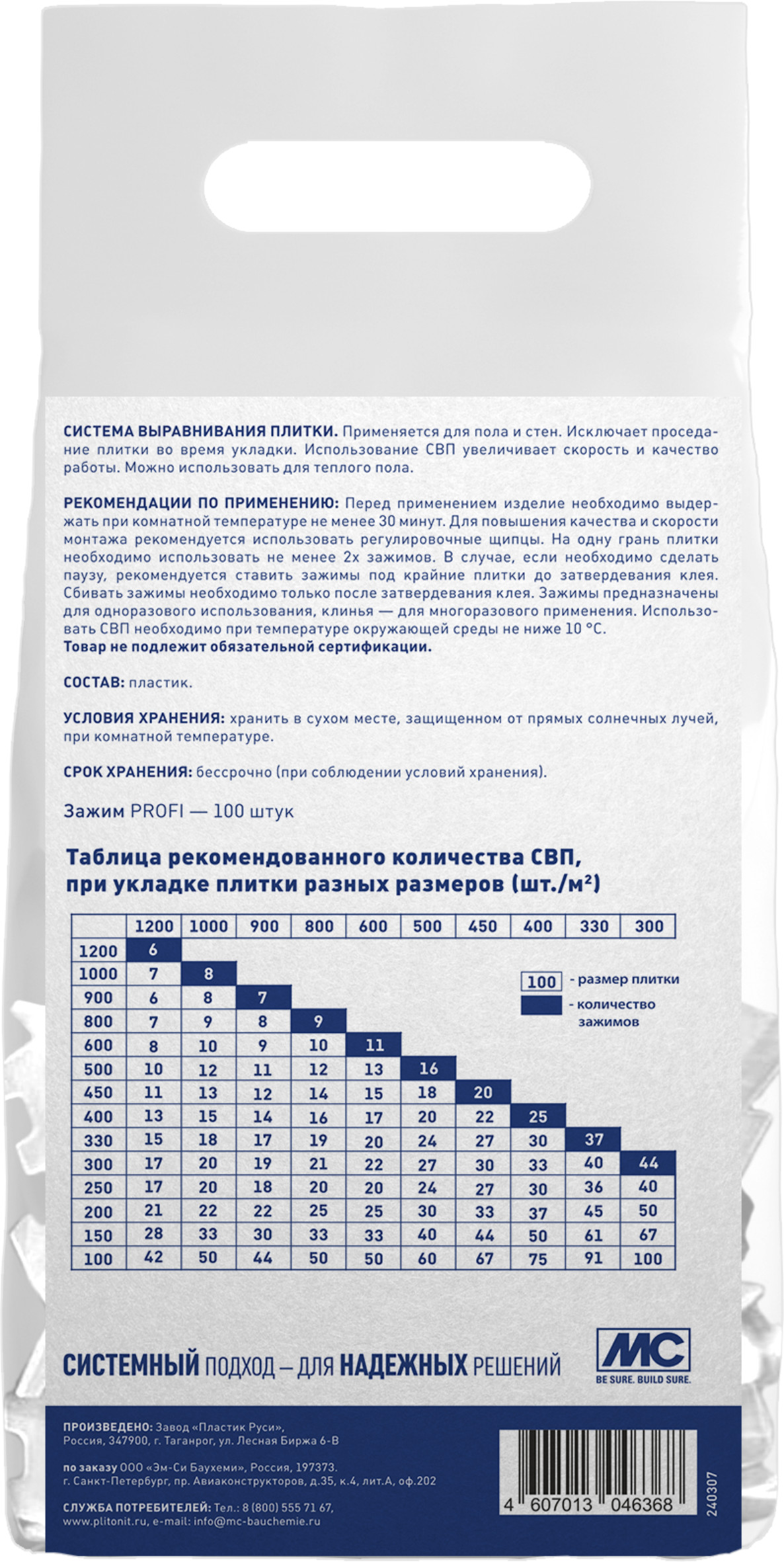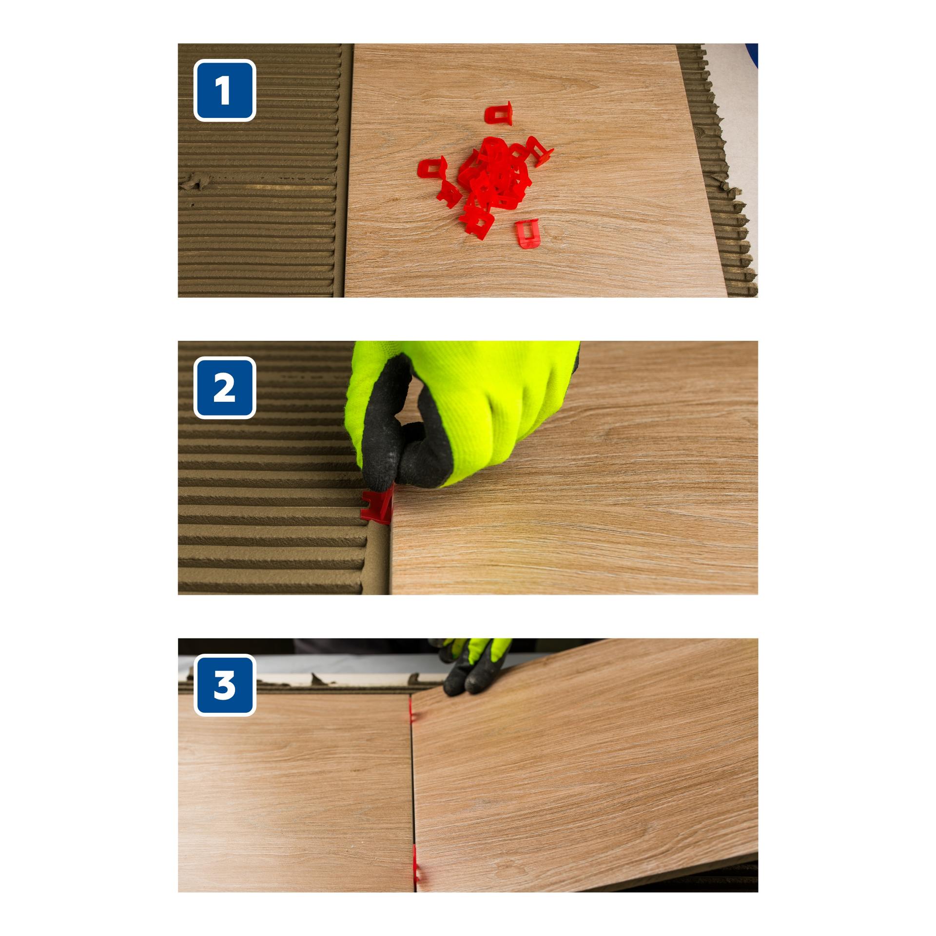 - Надежная система на двух ножках. Форма с двумя ножками повышает надежность системы и позволяет работать с большими форматами плитки и керамогранита, при этом обеспечивая экономию на количестве примененных зажимов.