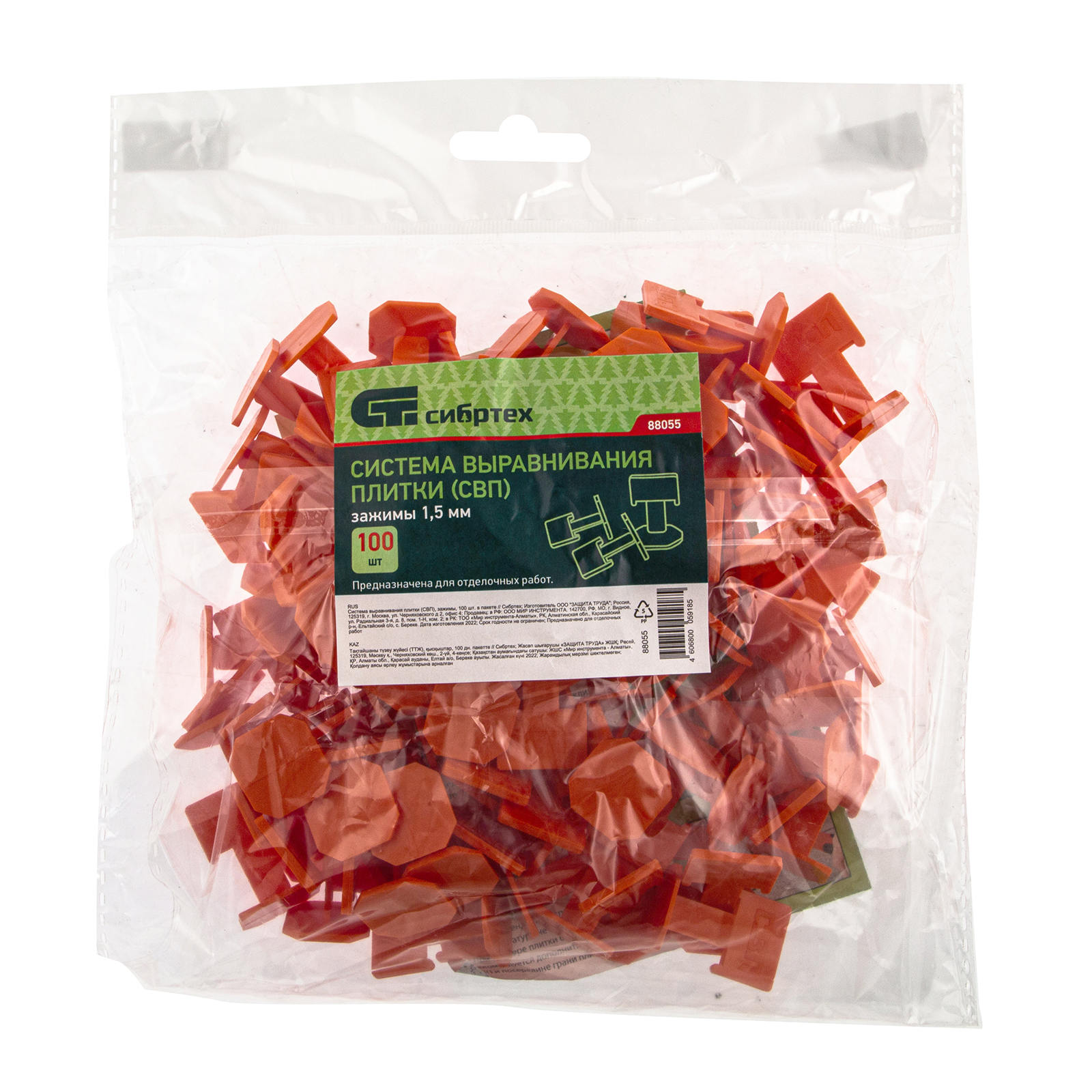 Система выравнивания плитки (СВП) Сибртех 88055 состоит из зажимов (100 шт. в пакете), используемых совместно с клиньями. Изделия позволяют добиться качественного результата за счет того, что межплиточные швы получаются ровными и аккуратными, керамическая или керамогранитная плитка не смещается, а клей распределяется равномерно. Зажимы для плитки (СВП) предназначены для формирования швов 1,5-1,7 мм.