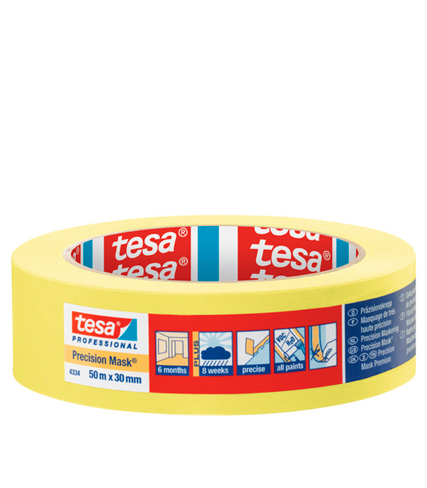Скотч/Малярная лента Tesa 04334-00010-00 предназначен для защиты поверхностей при проведении малярных, штукатурных, лакировочных работ. Обеспечивает ровные, четкие границы при окрашивании или лакировке, даже на неровных и шероховатых поверхностях. Легко удаляется , благодаря тонкой , но стойкой к разрыву основе. Удаляется без следа спустя 6 месяцев в помещении и до 8 недель на улице. Возможно применение для окраски распылением с последующей сушкой в печи до 120°C не более 30 мин.