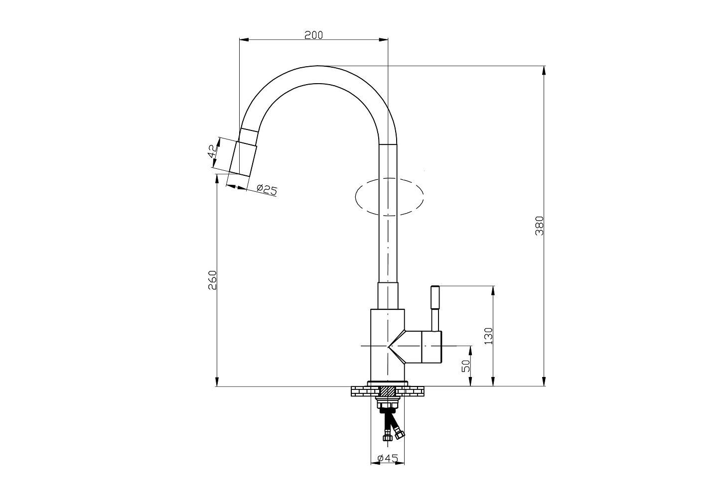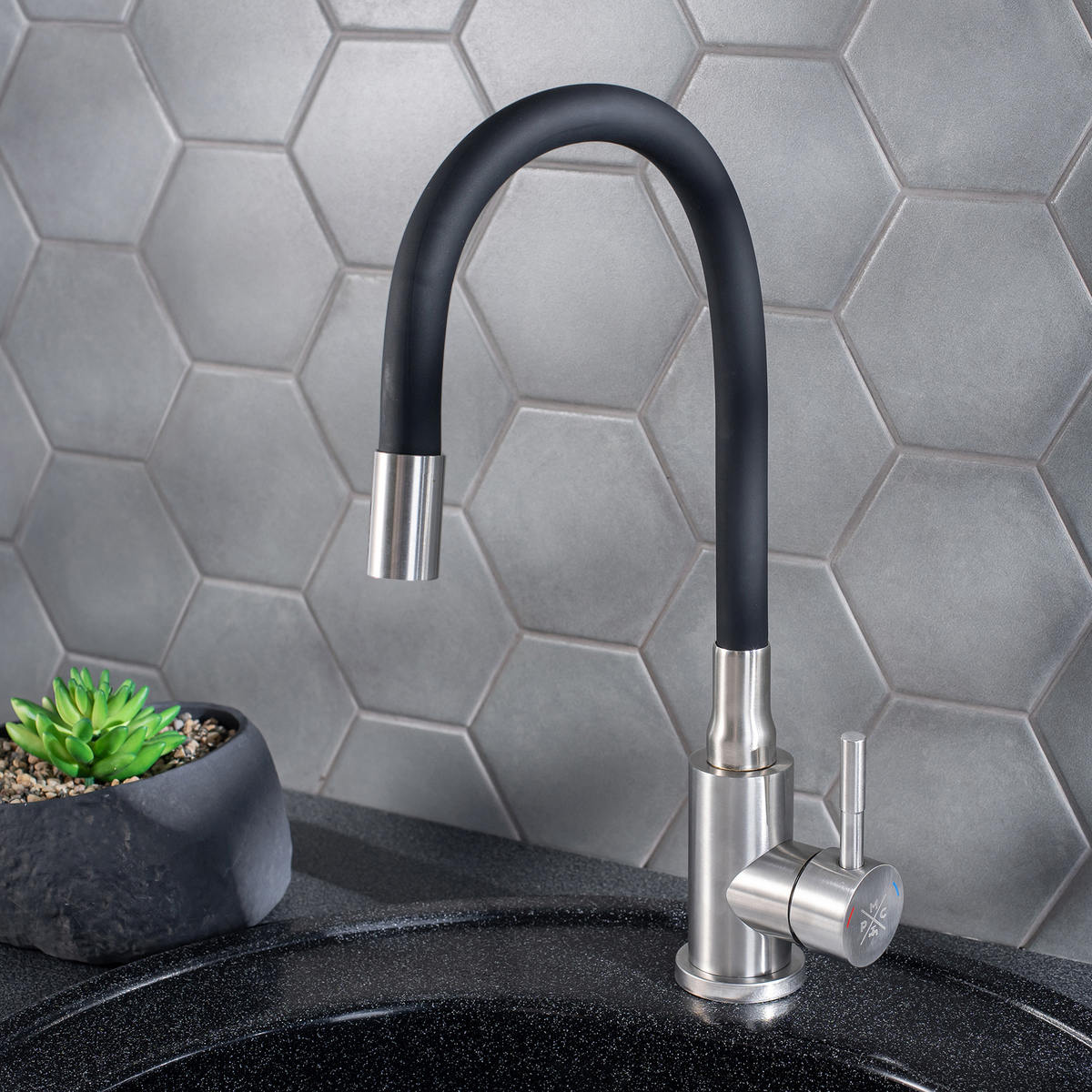 Смеситель для кухни однорычажный РМС SUS124BL-016F с высоким гибким изливом (нерж.сталь/черный)