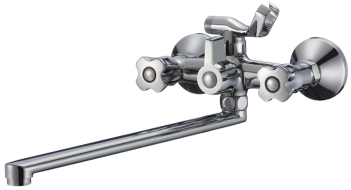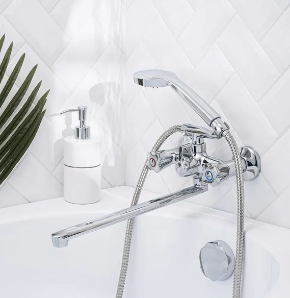 - Тип управления — двухрычажный вентиль с керамическими кран-буксами, обеспечивающими долговечность и плавность регулировки температуры и напора;