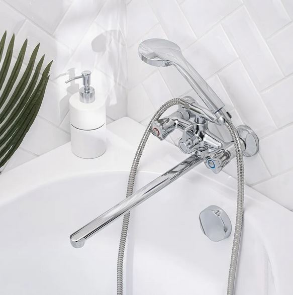 - Комплектация включает металлический шланг для душа длиной 150 см, душевую лейку, эксцентрики и отражатели для простого монтажа;