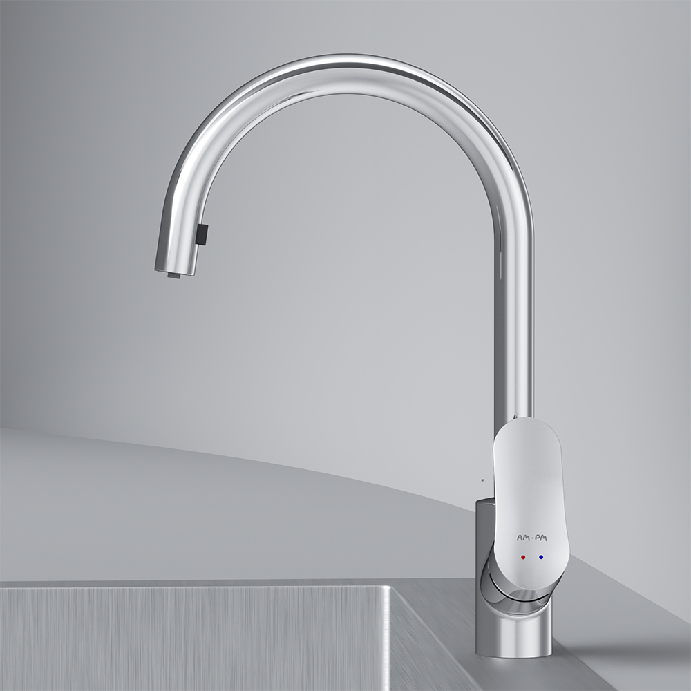 Впервые модный дизайнерский смеситель в доступном сегменте: ультрамодный стиль Dynamic Organic — природные формы в сочетании с четкими линиями, доведенными до совершенства человеком. Максимальный комфорт: плавное вращение вытяжного излива в любом направлении обеспечивает непревзойденное удовольствие от использования и удобство в работе на кухне. Эксклюзивная разработка: специально спроектированный для АМ.РМ керамический картридж SoftMotion 35 мм обеспечивает оптимальную регулировку температуры, а также позволяет выдерживать любые перепады давления. Разработан с учетом ваших потребностей и особенностей различных пространств. Высокий излив смесителя Like идеально подойдет для любой раковины поможет вам с легкостью справится с такими задачами, как наполнение больших емкостей.