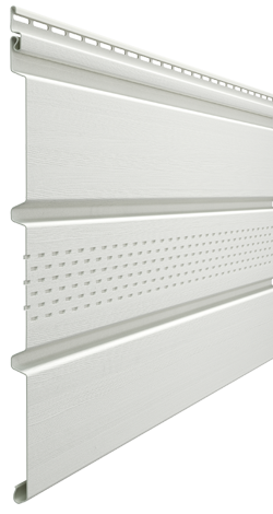 Софит с центральной перфорацией Дёке предназначен для декоративной отделки горизонтальных поверхностей - фронтонов, карнизных свесов, потолков открытых террас и веранд и обеспечивает вентиляцию подкровельного пространства.