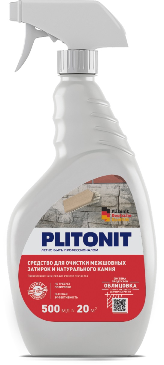 Средство для очистки межшовных затирок и натурального камня Плитонит 0,5л - специальное средство для очистки различных видов межшовных затирок для пола и стен, а также натурального камня. Эффективно устраняет загрязнения: ржавчину, масла, жиры, пыль, сажу