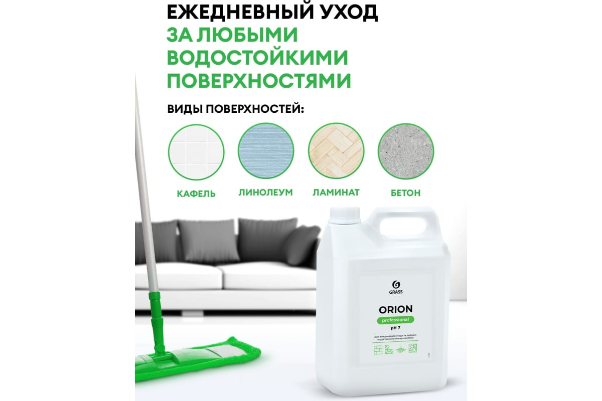 Моющее профессиональное универсальное средство низкопенное GRASS Orion Professional 5кг 125308 – предназначено для ежедневного ухода за любыми поверхностями в любых помещениях: бытовых и подсобных, на строительных и ремонтных площадках, офисах, бизнес-центрах, домах или дачах. Обладает дезинфицирующим антибактериальным эффектом и может использоваться при наведении порядка на любых покрытиях: линолеум, дерево, паркет, ламинат, асфальт, бетон, облицовочная плитка, стекло, гранит и мрамор. Особенно хорошо справляется с загрязнениями на в грязных зонах (туалетах, ванных и кухнях). Обладает приятным запахом. Понравится профессионалам. Состав: >30% очищенная вода, <5%: неионогенные ПАВ, соль ЭДТА, ароматизирующая добавка, метилхлороизоциазолинон и метилизоциазолинон, краситель; Способ применения: концентрат разводят в пропорции 1:500-1:100 или 2-10 мл на 1 литр воды. Концентрация раствора зависит от характера загрязнения. Преимущества: