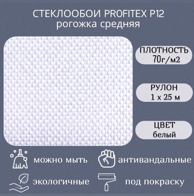 Стеклообои Profitex Рогожка средняя артикул Р12 рулон 1 х 25м.п.
