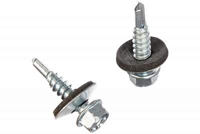 Саморезы кровельные снабжаются уплотнительными резиновыми прокладками. Они защищают здание от проникновения влаги в месте установки крепежа.