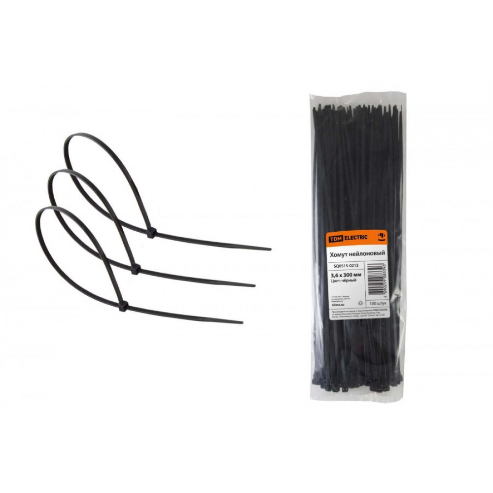 Хомут-стяжка для кабеля 3,6 х 300мм черный 100шт/уп предназначен для крепления проводов и кабелей к различным несущим поверхностям, объдинения проводов и кабелей в группы, крепления бирок.