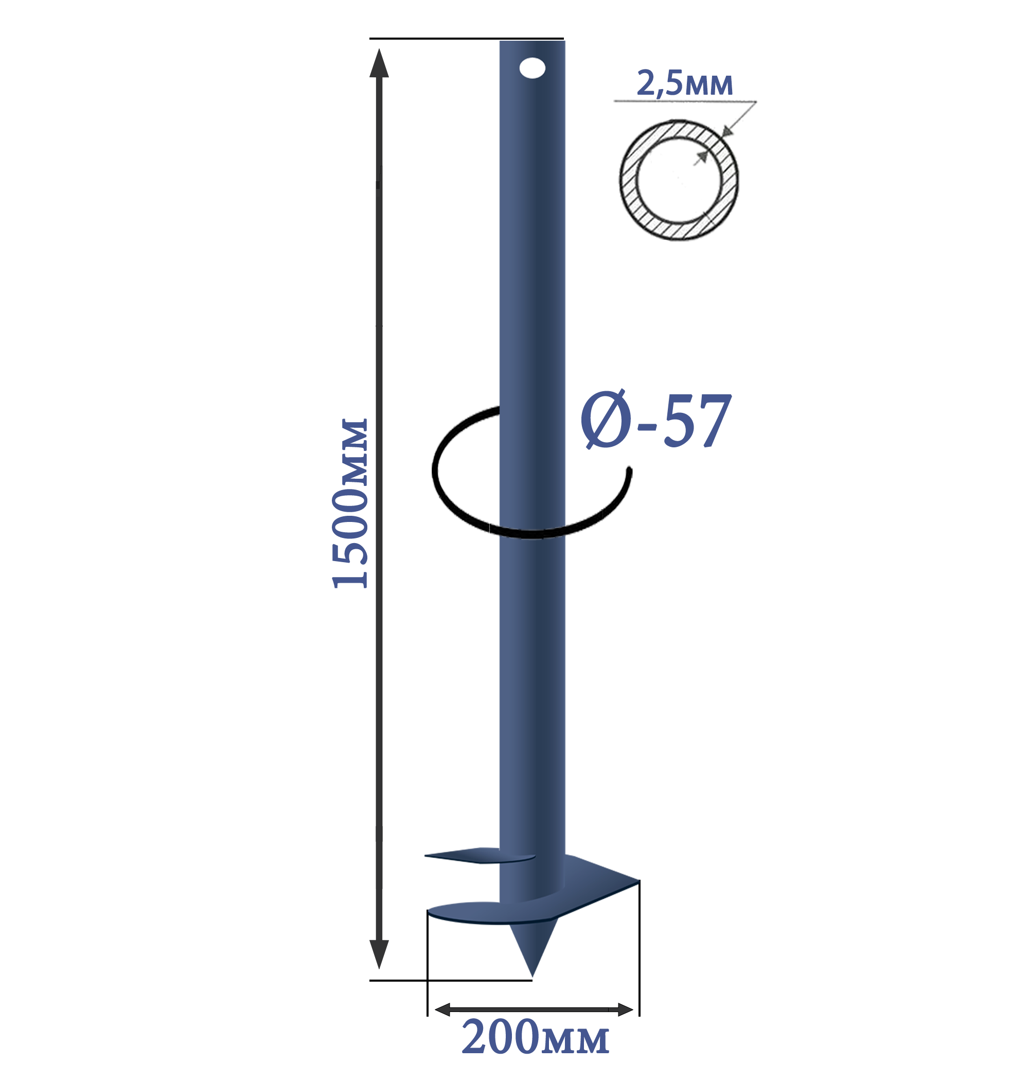 Свая изготовлена из горячекатанной трубы круглого сечения. Конус круглой части сделан путем надрезов трубы и сварен между собой.