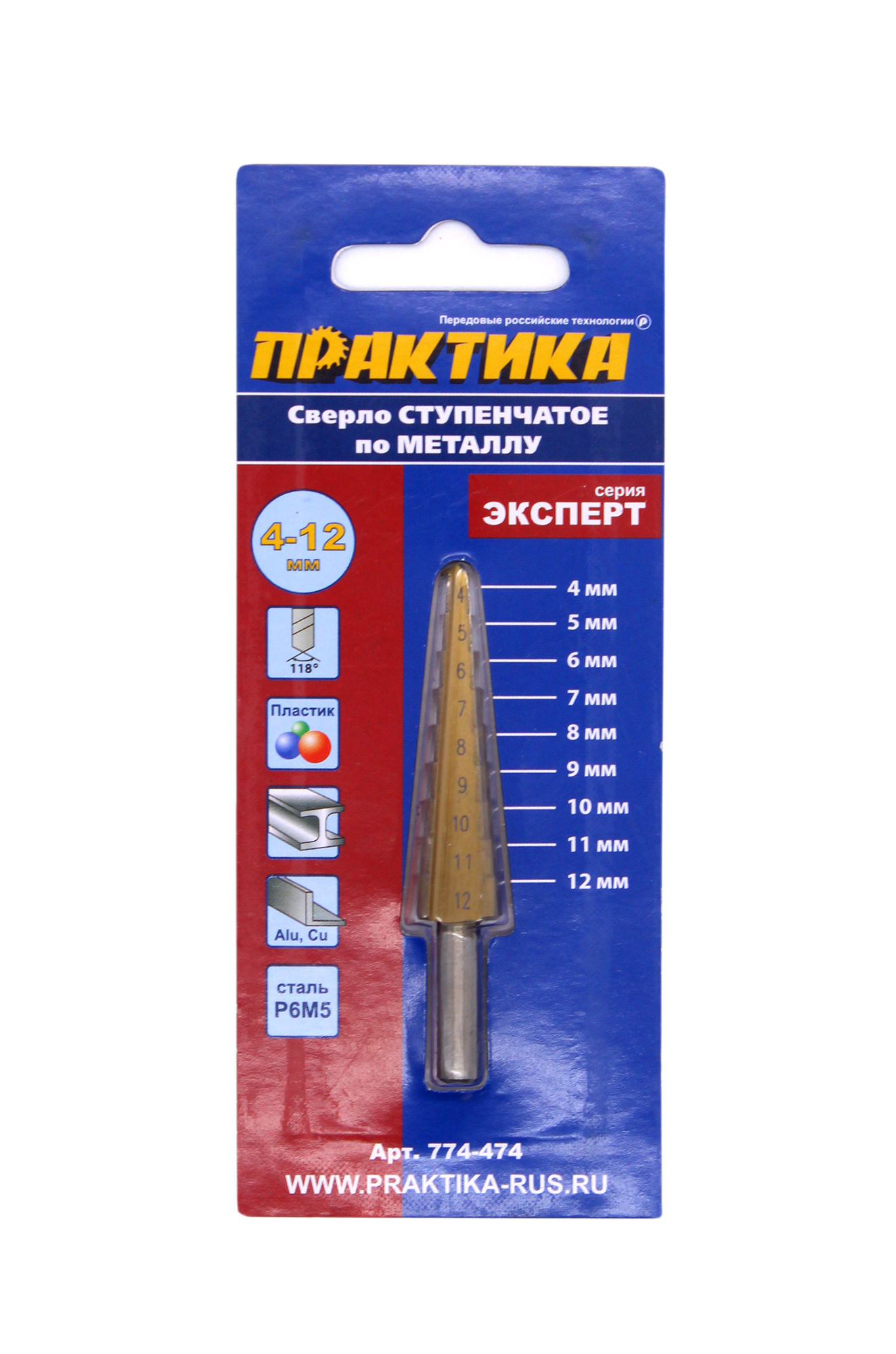 Сверло по металлу ступенчатое Практика 4-12 мм шаг 1 мм